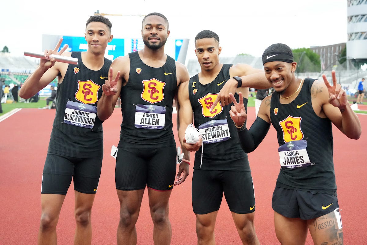 Allen, who ran the third leg on USC’s NCAA champion 400-meter relay team last year, was a 200-400 sprinter in high school with bests of 20.84 and 46.99. However, he focused on the 100 and 200 last season while lowering his personal bests to 10.34 and 20.71 in those events.